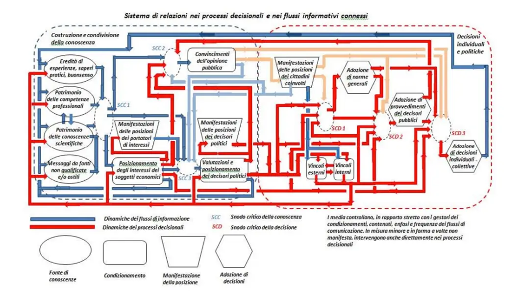 B. nel processo decisionale, differenziare il ruolo degli esperti da quello dei politici: i primi dovranno produrre analisi di scenari alternativi individuando strumenti e risorse necessarie oltre che i benefici attesi, in una logica che si potrebbe chiamare di what if, astenendosi da pronunciamenti rigidi sulle effettive scelte conseguenti; i politici avranno il diritto dovere della scelta alla luce di visioni appunto politiche sul fronte socio economico, evitando di considerarsi come esperti in grado di valutare situazioni complesse non basandosi su quanto emerge da approfondimenti professionali, una presunzione demiurgica spesso catastrofica; c. priorità dovrà essere dedicata alla rimozione di impedimenti trasversali che impediscono il decollo reale di praticamente tutti i settori produttivi (ne sono esempi la bassa produttività e il ginepraio burocratico del sistema amministrativo, basato sulla compliance procedurale e poco impegnato sulla performance e più in generale sull’accountability).